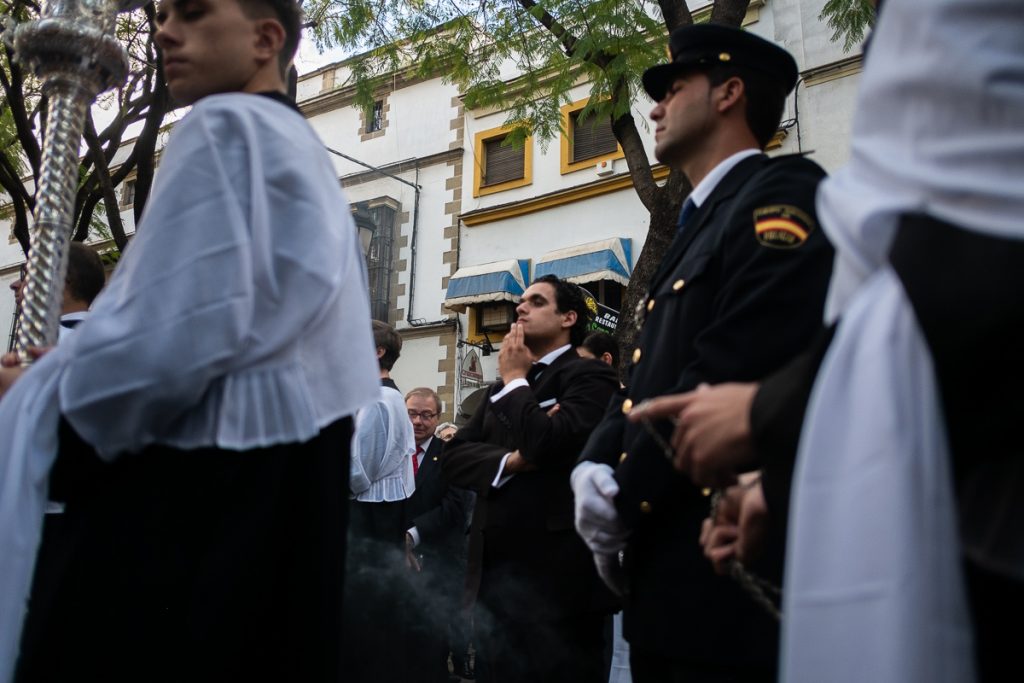 Con los ojos puestos en Sevilla, donde una fuerte tormenta de lluvia y granizo, el Jueves Santo se presentaba con preocupación para los jerezanos. Sin embargo y a pesar de un cielo que parecía amenazante, el tiempo dio una tregua y el cielo se abrió, dando lugar a una magnífica tarde.