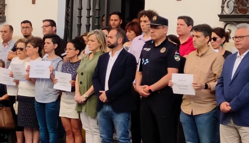 Unas 80 personas, convocadas por el Ayuntamiento de Puente Genil, asistieron el lunes a una concentración de cinco minutos de silencio en las puertas del Consistorio en solidaridad con la joven víctima de la agresión sexual.
