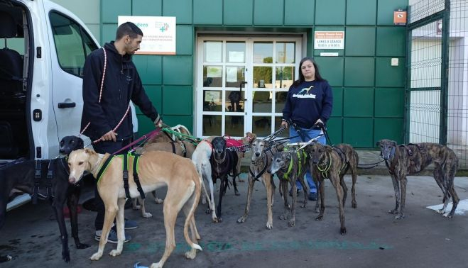 Once galgos han sido rescatados en Córdoba. Los animales fueron desechados y llevados a una perrera por galgueros que no los consideraban ya útiles para la caza, aunque hay algunos que fueron recogidos directamente en la calle.