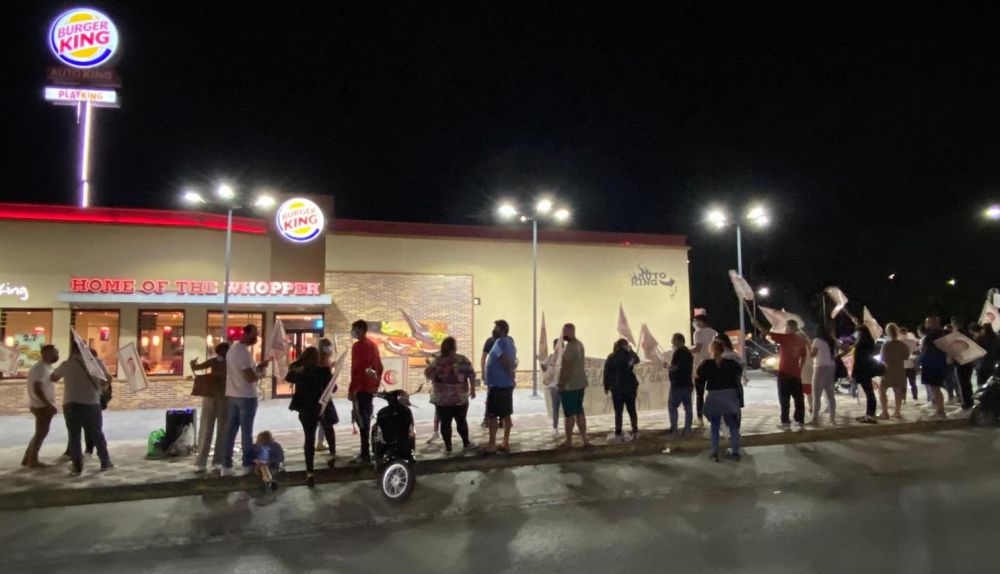 "Burger King, que sepas, que estamos con Rebeca". El grito volvió a oírse alto y claro el pasado viernes en uno de los restaurantes de la cadena de comida rápida Burger King. Esta vez la concentración tuvo lugar, en horario de máxima audiencia –entre las 21 y las 22.00 horas, cuando más clientes acuden—, a las puertas de uno de los locales de Sanlúcar de Barrameda, donde recientemente han inaugurado un nuevo establecimiento.