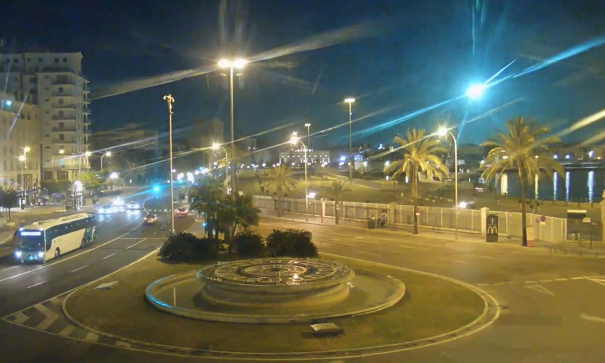 Las cámaras del conscorcio Aguas de Cádiz han captado el momento en el que la bola de fuego ha iluminado la capital desde la plaza de Sevilla, donde tiene instalados los dispositivos.