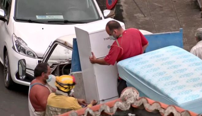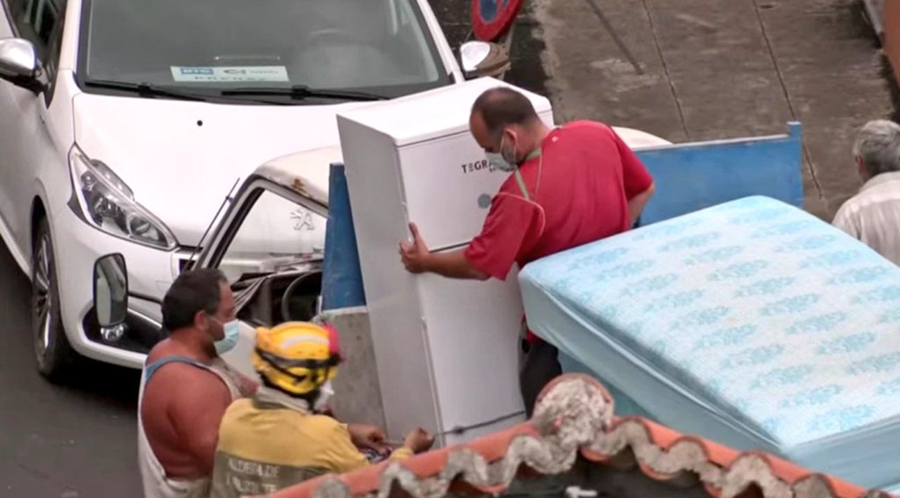 La lava se abre paso y los vecinos solo disponen de unos minutos para sacar a contrarreloj todo lo que puedan para intentar que este desastre natural no acabe con todos los recuerdos que guardaban sus hogares.