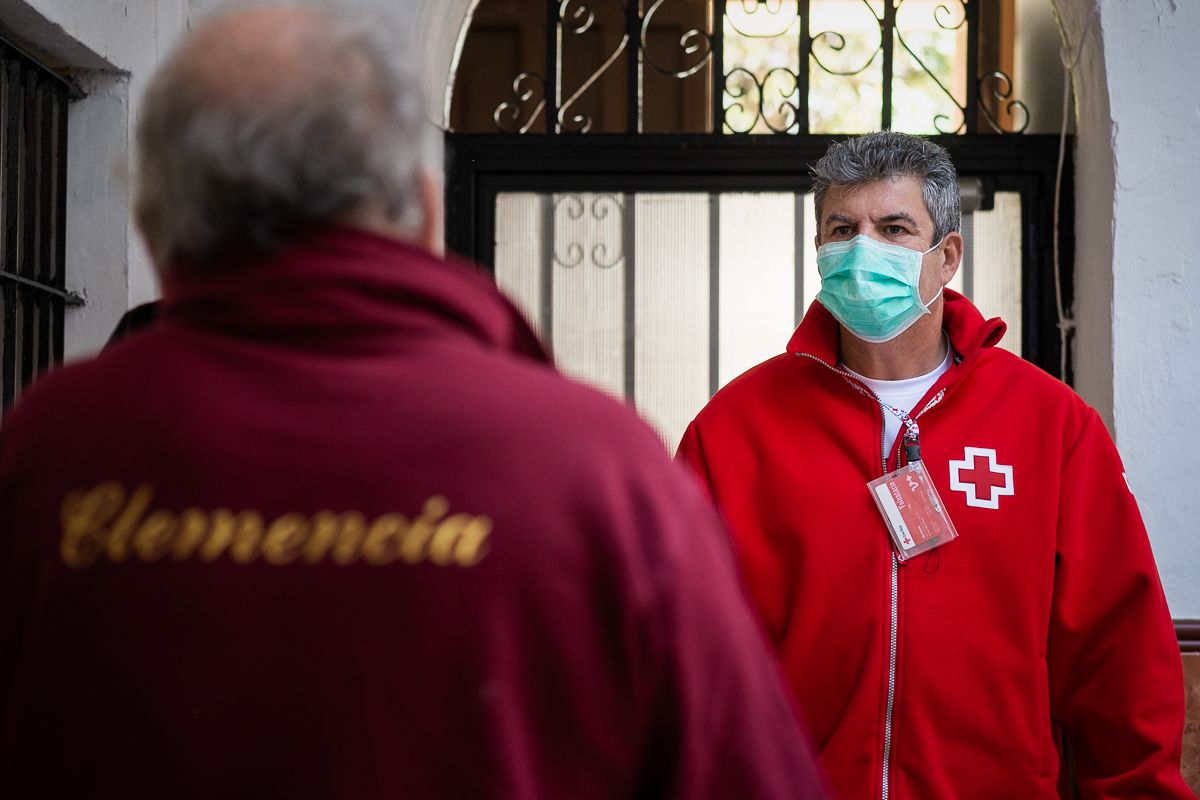 “Hay una enfermedad que se ve acentuada con el coronavirus, que no se diagnostica, y es la soledad. Es una plaga que la vivimos, vemos y sentimos. Hace falta mucho acompañamiento. Las personas están muy solas”, dice Quini Rodríguez, uno de los fundadores del Alma de África UD, un equipo de fútbol integrado por inmigrantes, nacido en Jerez. A él, enfermero de profesión, le concedieron una invalidez y de la noche a la mañana se quedó en su casa, “sin saber qué hacer”. “Siempre he tenido inquietudes sociales”, expresa, unas inquietudes que lo llevaron a hacerse voluntario de Cruz Roja, primero impartiendo formación y ahora dentro del programa de mayores, repartiendo alimentos y medicinas. “Hay mucha necesidad”, señala Quini. De hecho, durante el reportaje hay personas que le preguntan en varias ocasiones si llevan alimentos que les puedan repartir. “Se nota que ahora —con el estado de alarma— hay más demanda”.