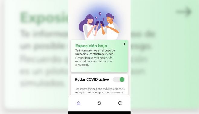 La aplicación móvil Radar COVID es una iniciativa del Gobierno que se puso en marcha primero en la isla de La Gomera. Consiste en que si de dos personas que entrar en contacto, una de ellas posteriormente resulta positivo en la enfermedad del coronavirus, la persona no infectada recibirá una alerta de que ha tenido un contacto sospechoso y que, por consiguiente, podría estar también infectado. Desde este martes 11, y tras algunos arreglos introducidos, ha comenzado a funcionar en fase beta, es decir, en búsqueda de errores para seguir mejorando sin garantizar aún una efectividad completa.