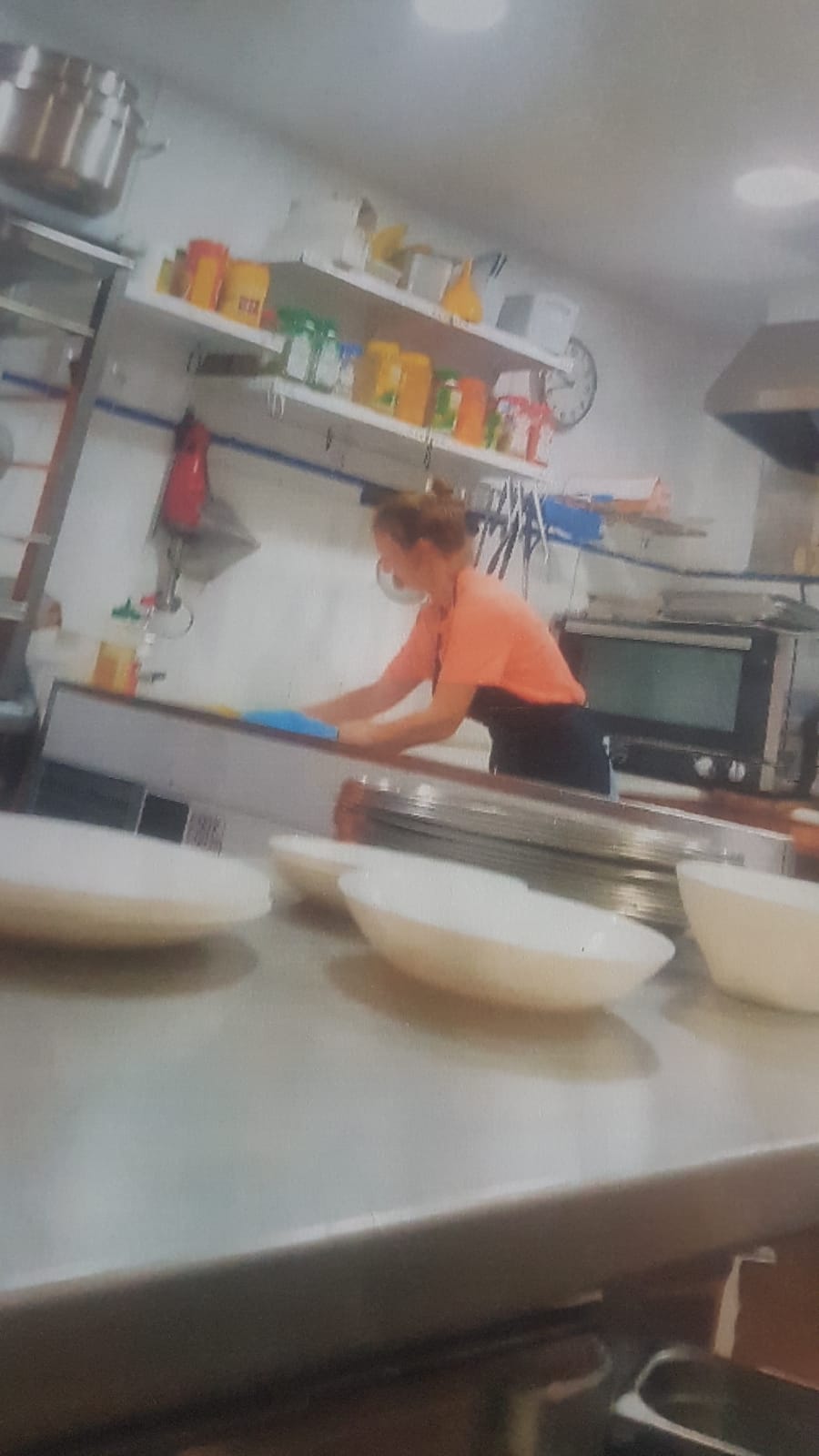 “Fui asignada a la limpieza de cocina durante seis días. Estuve lavando entre 100 y 150 platos, ollas, hornos, mesas con un controlador de la ONG. Así durante cinco horas diarias”, explica Oleksandra, que cuando le tocaba, colocaba las sillas encima de las mesas y limpiaba el comedor y los baños de uso comunitario utilizados por hasta ocho personas.