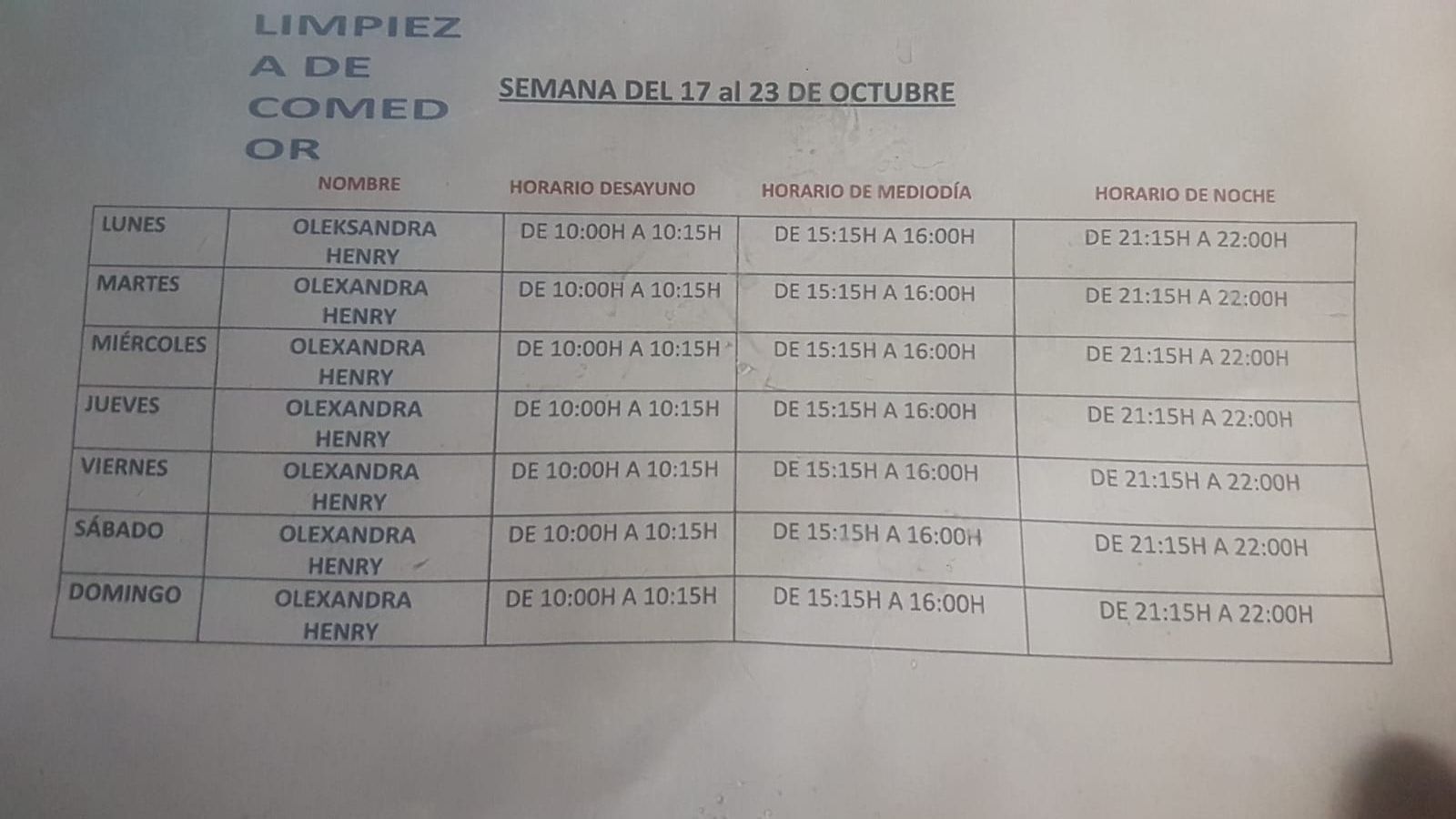 Según explica a lavozdelsur.es, durante tres meses esta "temporalmente desplazada" ha estado sometida a “tareas exhaustivas de limpieza con controles permanentes”. La ucraniana detalla que cada lunes se comunicaban las tareas asignadas a cada beneficiario mediante una plantilla.