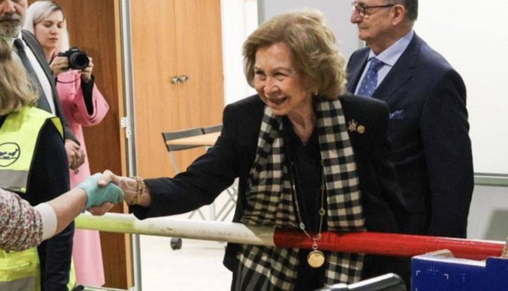 Doña Sofía ha asistido vestida de manera sobria, con un conjunto oscuro y una pashmina de cuadros, manteniendo el luto sin renunciar a la cercanía y a la cordialidad. Durante la visita, ha saludado a voluntarios y empleados del banco, motrando interés por la labor diaria de la entidad y recorriendo las instalaciones, incluyendo la nueva planta fotovoltaica donada por su fundación.