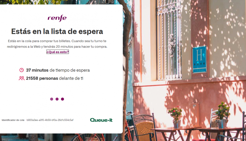 La empresa ha cambiado su procedimiento y ahora, cuando alguien intenta adquirir un viaje, se adentra en una fila virtual que funciona como una lista de espera. En ella aparecen tiempos superiores a 30 minutos para poder conseguir los billetes que uno pretende.