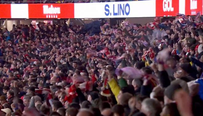 En la previa también se pudieron escuchar insultos racistas por parte del Frente Atlético contra el jugador brasileño Vinicius.