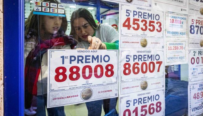 El sorteo de Navidad deja muchas imágenes curiosas, pero sin duda, una de las que se va a llevar la palma es la vista en la celebración de Écija. El municipio sevillano ha sido agraciado con 'El Gordo' del 88.008. Los afortunados no han tardado en aparecer por la administración de Loterías donde se ha vendido.