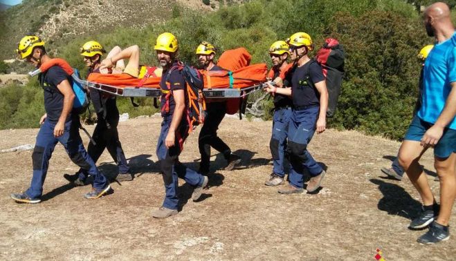 Efectivos de Bomberos y del Instituto Armado han accedido hasta el lugar donde se encontraba el parapentista y lo han evacuado al helicóptero sanitario desplazado por EPES, en el que ha sido trasladado al hospital con posibles fracturas en una pierna.