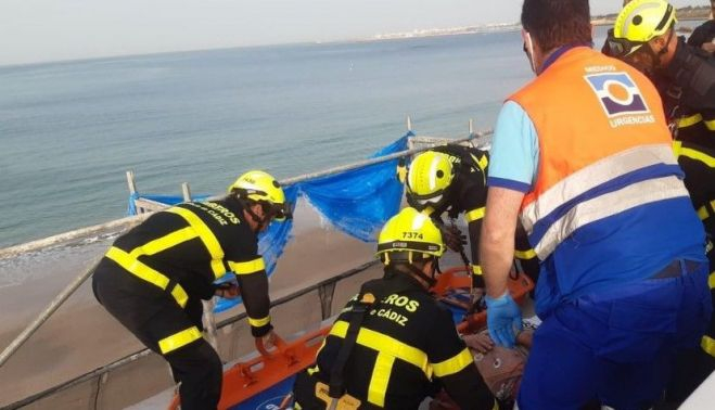 Los bomberos han rescatado a un operario de un andamio en El Puerto con un posible infarto en un andamio. El trabajador se encontraba en la calle Mora y el suceso ha ocurrido a primera hora de la mañana.