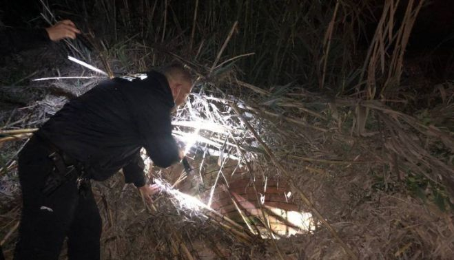 Los agentes tuvieron que partir cañas para descubrir que bajo las mismas había un pozo de un metro y medio de profundidad cubierto de agua, donde el joven se encontraba con una mano levantada en la que sostenía un móvil para poder tener contacto con el exterior.