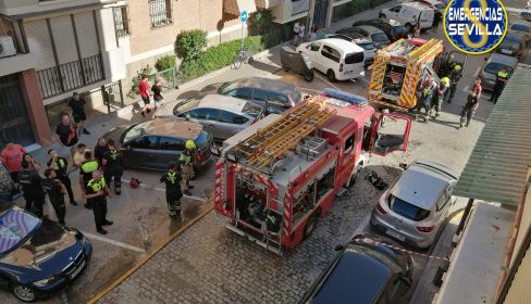 La Policía Local y la Policía Nacional han colaborado con bomberos en un incendio en el que también han intervenido la Unidad Municipal de Intervención en Emergencias Sociales y Exclusión Social (Umies), Emergencias 061 y personal de Seguridad Ciudadana del Ayuntamiento de Sevilla.