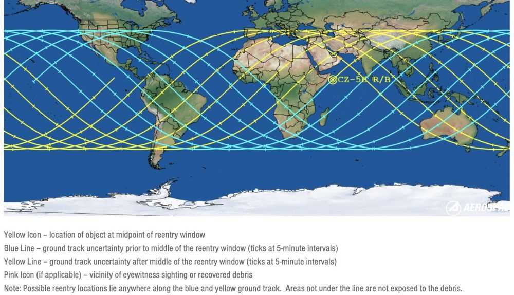Eurocontrol informa de la reentrada no controlada de un cohete chino en la atmósfera. Se ha establecido Rate Cero para determinadas zonas de espacio aéreo español y ello puede afectar al tráfico aéreo en forma de retrasos en tierra y desvíos de ruta en vuelo. pic.twitter.com/kfFBYG9s8z