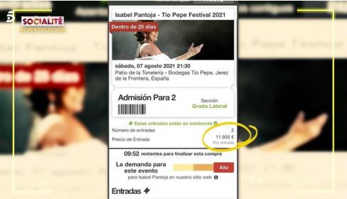 Reventa ilegal de entradas para el concierto de Isabel Pantoja en Jerez: hasta 12.000€. La autoridad autonómica de espectáculos públicos debería anunciar un expediente sancionador a los revendedores y la web que los promociona. Lo he comentado en @socialitet5 de @maria_patino. pic.twitter.com/vNBT9XAyqI