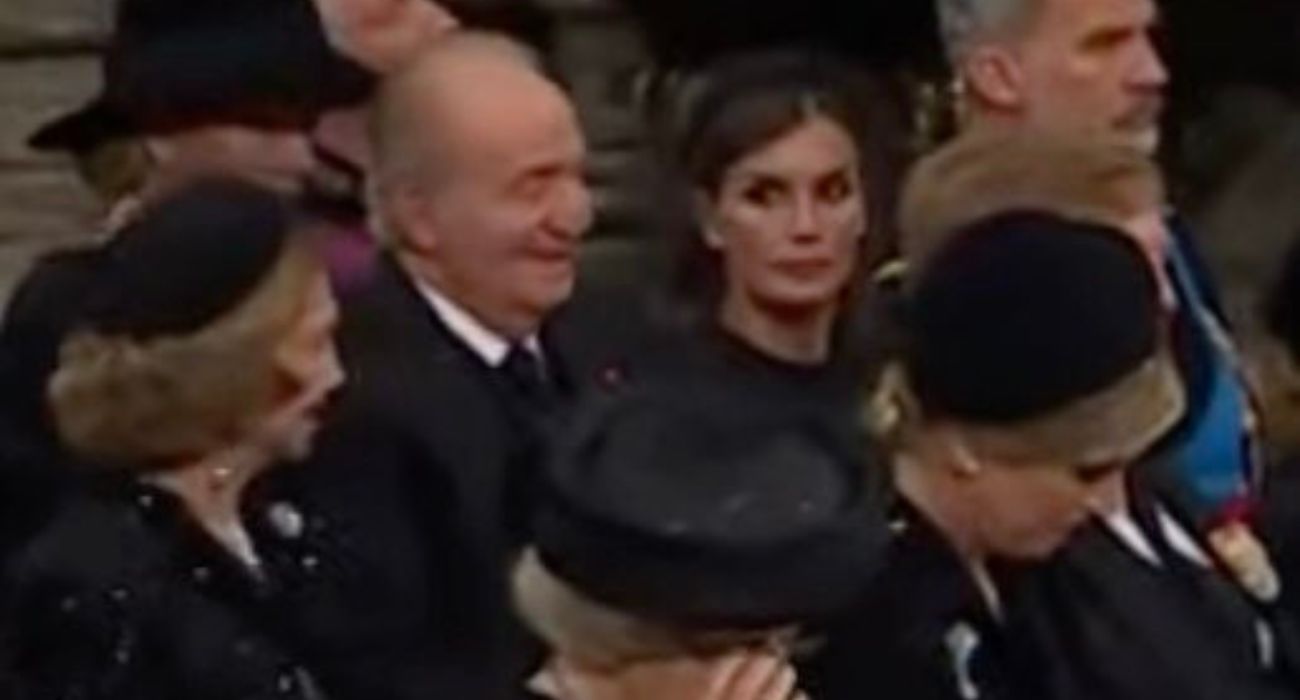 Es cierto que muchas veces los funerales, tal vez por las emociones contenidas, dejan momentos en los que se escapa alguna sonrisa, pero que sea Juan Carlos I de Borbón el propietario de la risa en el funeral de su prima Isabel II es, cuantos menos, llamativo.