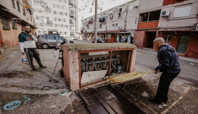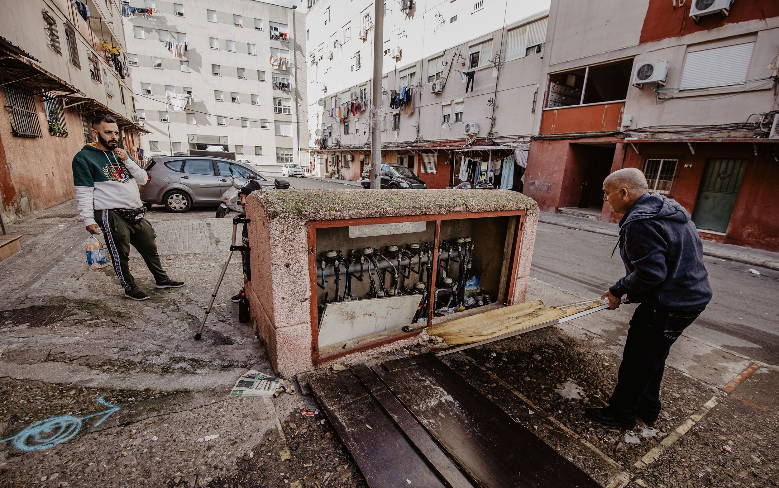 "Esto parece un gueto, nos han aislado y no hacen nada por nosotros". Sin ir más lejos, y por acudir a la situación penosa más inmediata, los vecinos y vecinas llevan un mes y medio sin alumbrado público, y no reciben una respuesta firme sobre cuál es la causa del problema o cuándo van a solucionarlo. "Lo único que sabemos es que de noche aquí no se ve nada", añade otro vecino. Probablemente, como ya ocurrido con distintos incendios en cuadros de contadores, los enganches ilegales para cultivos de marihuana estén detrás de los cortes. Pero en San Juan de Dios hay mucha gente obrera que paga sus impuestos y sufre las consecuencias de este fraude en el fluido eléctrico de unos pocos.