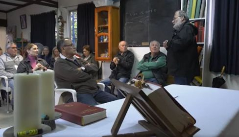 Él mismo fue maestro de ese colegio durante más de 25 años, cuando militaba en la CNT e impartía clases. Ahora, vuelve al espacio con otros mensajes que transmite a los 30 feligreses que acuden a la sede. La mayoría, prefiere desplazarse a otras parroquias, donde se celebran los bautizos, comuniones y bodas que desde septiembre de 2021 esta iglesia no puede acoger.
