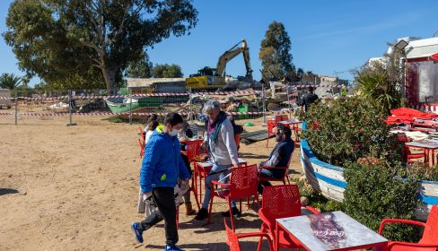 La mañana del lunes, 14 de febrero, comenzó con uniformes policiales y acordonadas las casetas, o lo que quedaban de ellas. El ambiente era extraño, como de ausencia. Pasaban las horas y el número de personas curiosas aumentaba. El sonido de las grúas desentonaba con la calma de la mar. Después de más de un año y medio de tiras y aflojas, la Demarcación de Costas en Andalucía Atlántico ejecutó la sentencia de muerte de un lugar de ocio para unos y un espacio donde cobijarse para otros.