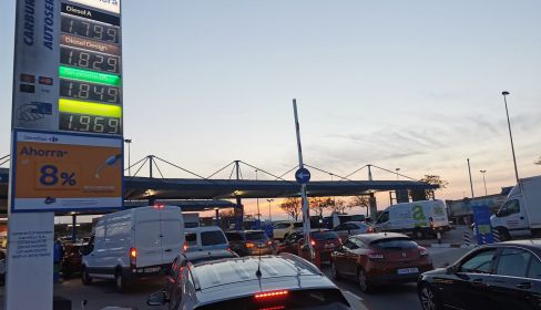 Como ocurriera hace dos años, muchos ciudadanos se están lanzando esta semana a las grandes superficies comerciales para llenar tanques de vehículos y despensas por lo que pueda suceder en las próximas semanas. Si el anuncio de la huelga del transporte creaba una sensación de apocalipsis en las gasolineras en el día de ayer, hoy se han vuelto a repetir escenas similares, con colas interminables para repostar.