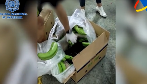 Los agentes registraron varios contenedores, en los que hallaron entre cajas de plátanos un total de 976 tabletas, que arrojaron un peso bruto aproximado de 1.152 kilogramos de cocaína.