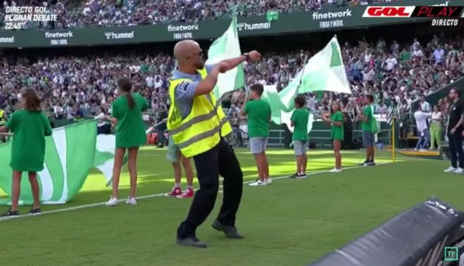 Pero además de superar este reto que había planteado la entidad de Heliópolis, el Betis se ha hecho viral por el show que se marcó un supuesto vigilante de seguridad durante el referido baile.