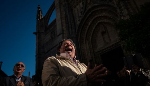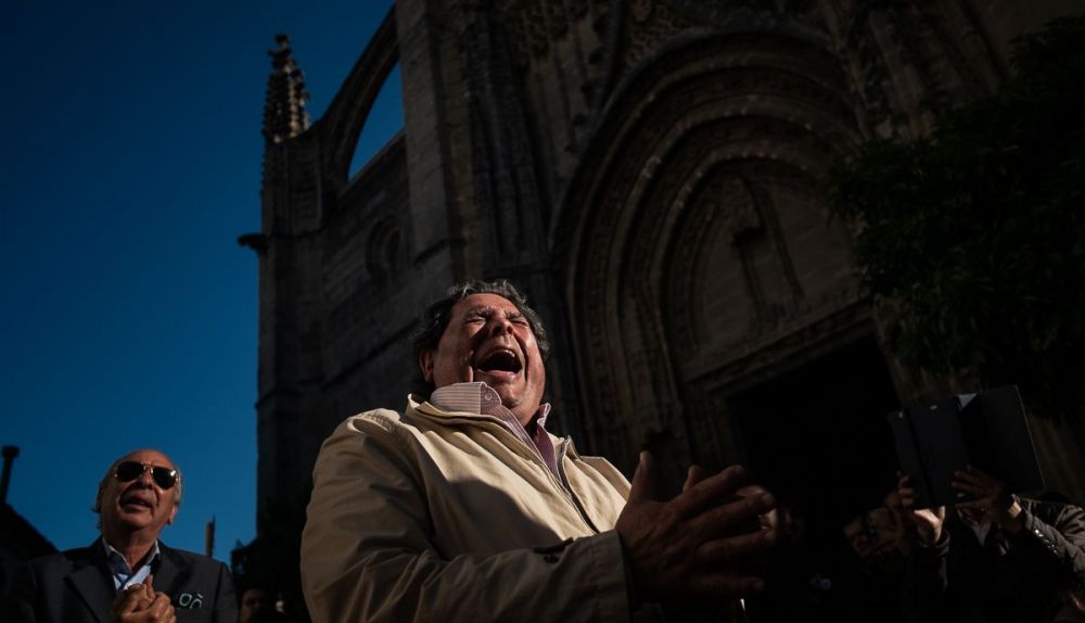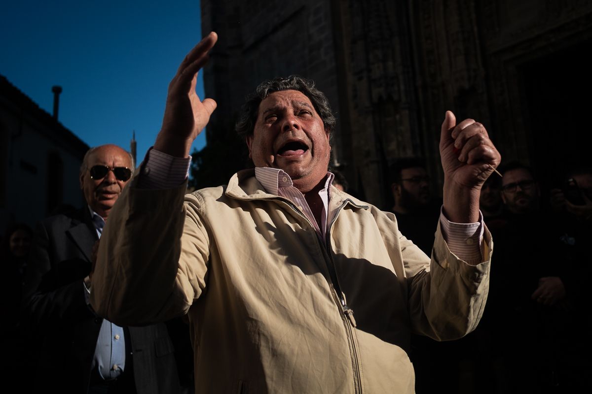 Ángel Vargas canta a La Buena Muerte, en la mañana de este Viernes Santo. FOTO: MANU GARCÍA