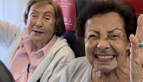Como parte de la iniciativa Sueños de Adopta Un Abuelo, el programa intergeneracional de compañía para personas mayores, y gracias a la colaboración de la aerolínea, que aportó los billetes de avión, la organización pudo hacer realidad el mayor deseo de Ángela y su hermana Aurora.