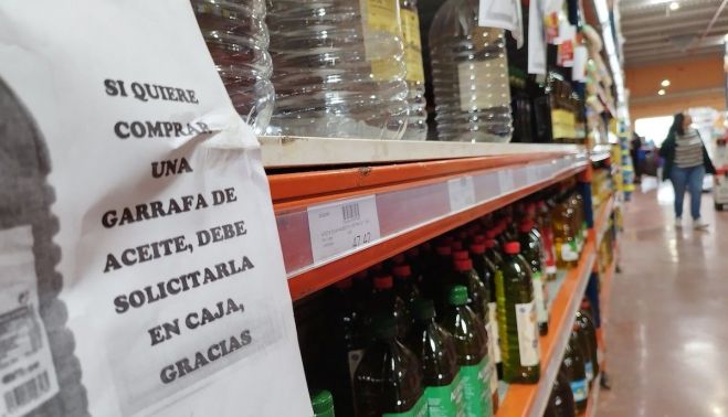 Hay una estampa llamativa que se puede ver en los supermercados de Super Carmela, concretamente en los lineales donde se encuentran las garrafas de aceite de oliva.