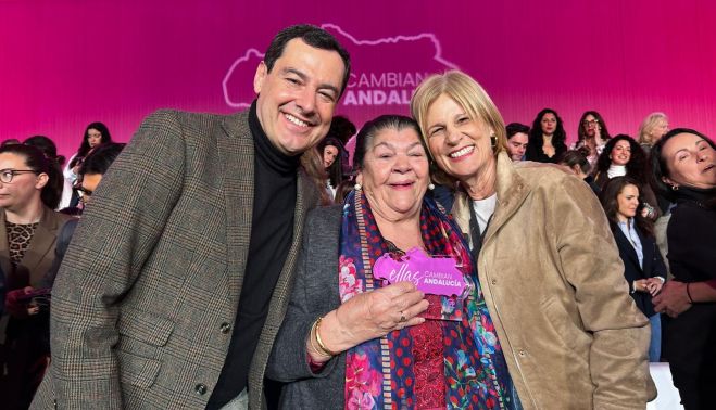 Si este pasado sábado María Jesús Montero presidía en San Fernando la entrega de los 27 premios Clara Campoamor del PSOE-A, este domingo, 8 de marzo, Día Internacional de la Mujer, el presidente de la Junta de Andalucía y líder del PP-A, Juanma Moreno, ha hecho lo propio en Sevilla, en el hotel Renacimiento, liderando la entrega de premios Ellas cambian Andalucía, donde han sido reconocidas ocho andaluzas referentes. Entre las galardonadas, la nota de arte la ha puesto Antonia Reyes, Tía Yoya, "un eferente de las tatas de Santiago y bandera del baile por bulerías. ¡Arte en estado puro!".