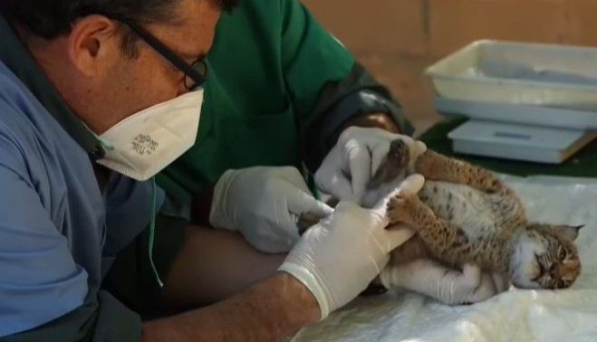 Las dos crías de lince ibérico que nacieron el mes de marzo en el Zoo de Jerez han pasado su primer chequeo tras cumplir el mes. El equipo veterinario del Zoo ha realizado el control de los cachorros.
