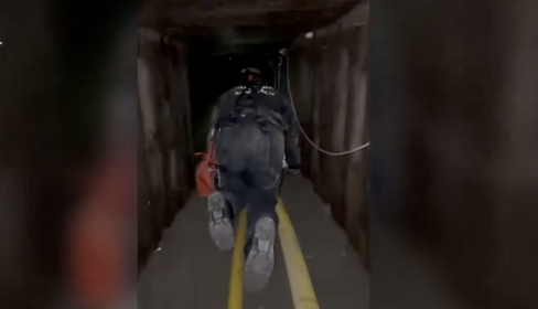 La Unidad de Subsuelo de la #GuardiaCivil accede al túnel hallado en Ceuta para su inspección.