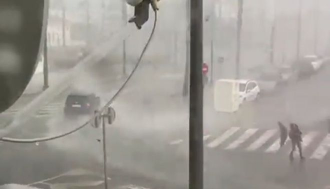 Una de las situaciones más impresionantes - y peligrosas - se ha visto en la localidad de Cartaya, en la provincia de Huelva. En un vídeo subido a Twitter por el usuario @Hurtado1989 se puede observar como, en un día lluvioso, con lluvias torrenciales y charcos en el suelo, un viandante sostiene un paraguas a duras penas por el temporal para intentar cruzar la calle. Sin embargo, de repente aparece una gran racha de viento. Por las imágenes parece una especie de tornado que, además de llevarse el paraguas volando y tirar a este ciudadano al suelo, también dobla una señal de tráfico en centésimas de segundo.