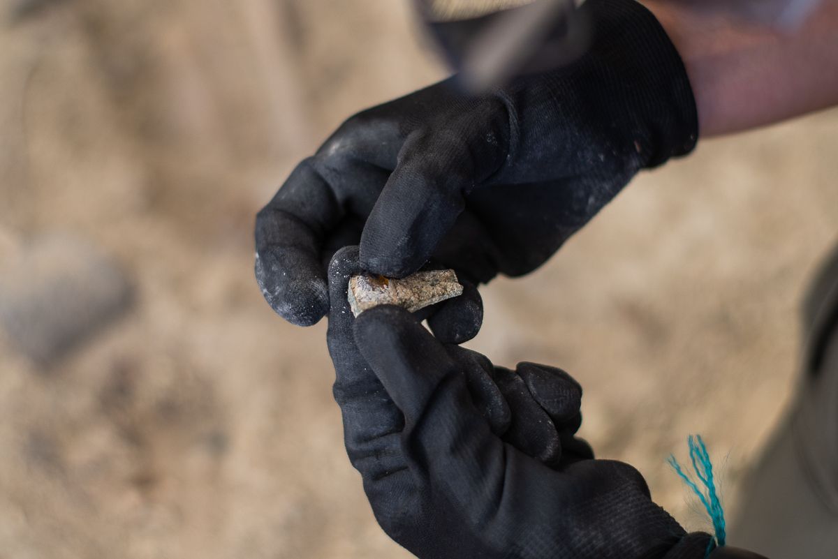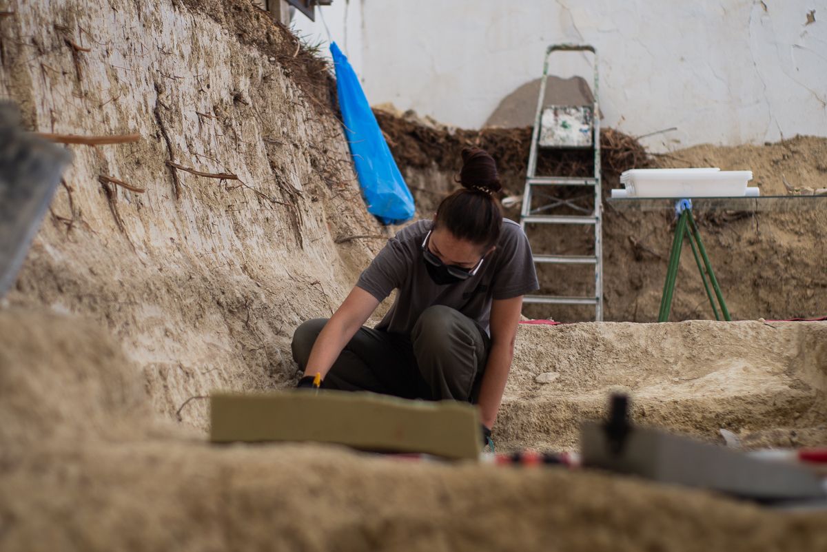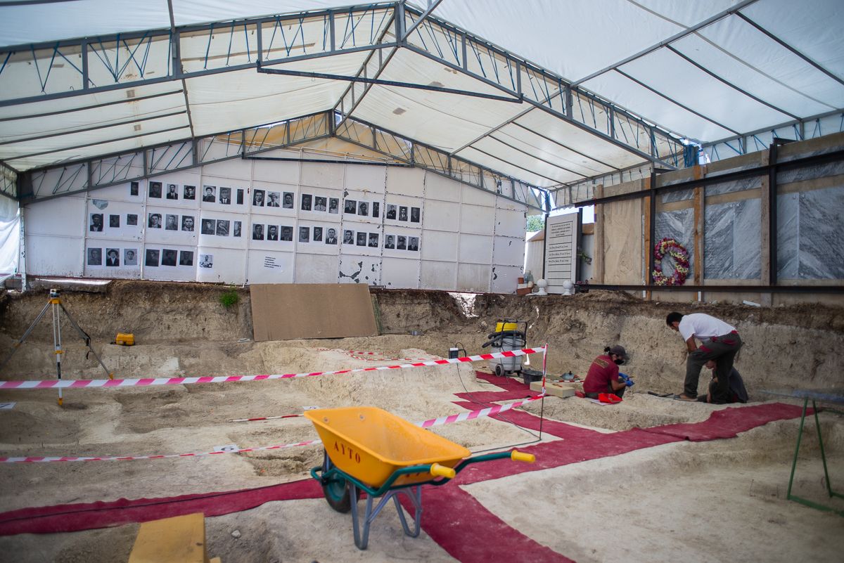 Mientras las visitas, de cinco en cinco, se desarrollan, el equipo continúa trabajando brocha en mano. Junto a varios cadáveres, que yacen con los brazos cruzados y el cuerpo levemente inclinado —signo de haber sido asesinados y luego depositados en las fosas—, encuentran numerosos enseres personales. Entre botones, vasos y otro tipo de menaje, también hay pequeños restos que no llegan a identificar. "¿Es una lupa?", se preguntan sobre un objeto de color ámbar, que poco a poco van limpiando, sin discernir de qué se trata.