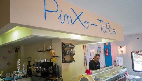 Todos los platos los ha escogido Noelia. "¡Soy una inventora!", bromea. En Pinxo-Tapas ofrecen desde lagrimitas de pollo, bartolitos, ensaladilla y boquerones en vinagre, hasta platos más elaborados como sus famosos pinchos. Pinxo secreto, que es como un serranito pero con secreto ibérico; su pinxo rulo (pan tostado, rulo de cabra, mermelada y cebolla caramelizada), o pinxo el fundido, compuesto de pan, sobrasada, tres quesos fundidos y orégano. "Los montajes son personales y, por lo que sé, no hay nada igual por aquí", indican. "Lo bueno que tenemos nosotros es que puedes ver cómo trabajamos, que es cocina al instante y que bueno, no tenemos ni microondas", remata Benjamín. Los precios de la carta no superan los 4 euros. Su intención es construir un bar familiar donde la gente se sienta como en casa.