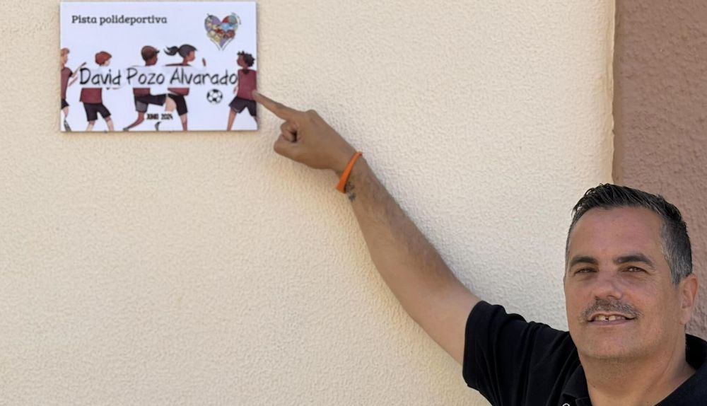 David es muy conocido y querido en el colegio por su gran implicación y ha recibido una gran sorpresa en forma de placa conmemorativa. Estará colocada en el centro porque el equipo directivo, formado por Eloy Andújar, Paco Márquez y Almudena Navarro, ha premiado su gran labor llamando con su nombre a la pista deportiva.