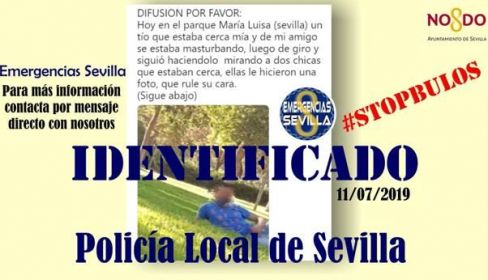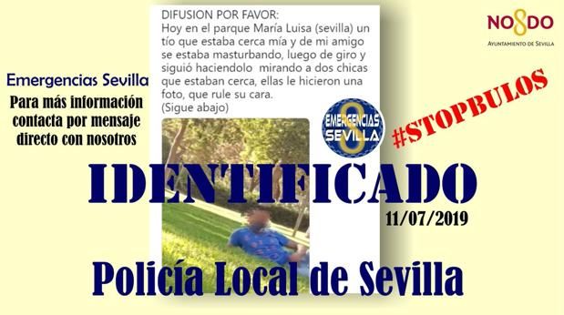 Agentes de la Unidad Turística de la Policía Local de Sevilla han identificado a un presunto exhibicionista que aparecía en un tuit publicado la pasada madrugada y que relataba con una foto cómo un varón estuvo masturbándose en un parque de la ciudad delante de un grupo de chicas y las persiguió por la zona.