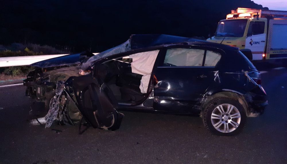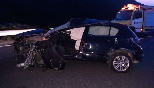 Bomberos del Consorcio de la Provincia del parque de Tarifa intervinieron en la noche de este viernes en el rescate de una persona por un accidente de coche ocurrido en el kilómetro 84 de la carretera N-340, en el donde el vehículo chocó contra el quitamiedos de la calzada.