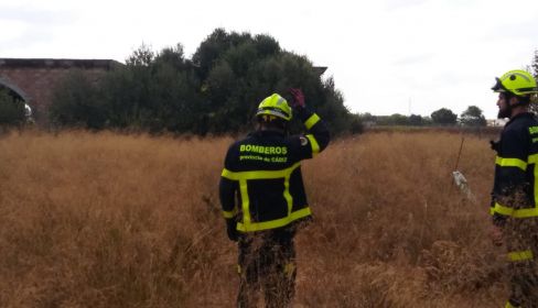 Efectivos del Consorcio de Bomberos de la Provincia de Cádiz han rescatado en la finca Hijuela del Cerrillo del Romero, ya precintada, en Chiclana de la Frontera, a un operario que cayó a un pozo en el que se encontraba trabajando para su sellado.