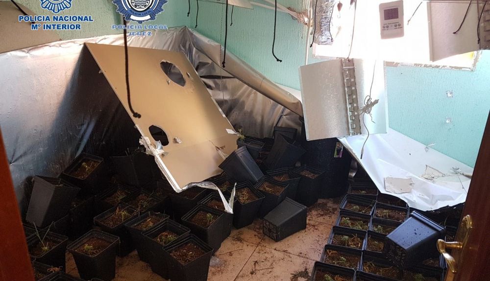 Agentes de la Policía Nacional y de la Policía Local de Jerez han localizado una completa instalación de cultivo y procesado de marihuana, tras acudir en apoyo de los bomberos, al detectarse un peligroso incendio en el interior de una vivienda ubicada en la sexta planta de un edificio de viviendas de nueve alturas en la conocida barriada de La Constitución, conocida popularmente como el Mopu. Por estos hechos ha sido detenido el propietario de la vivienda.