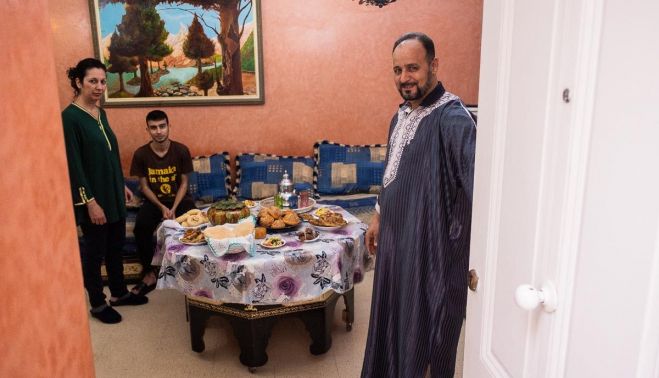El Mokhtar y Hasida, con sus hijos Houdaifa y Somiya, durante el iftar. FOTO: MANU GARCÍA