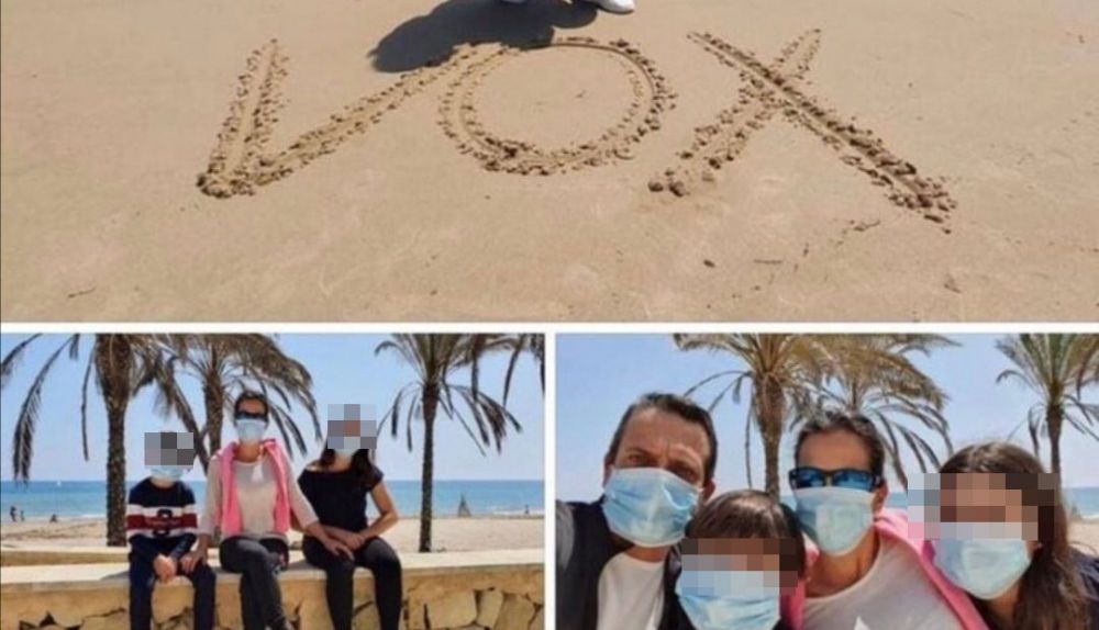 En una captura de la publicación posteriormente borrada se ve cómo la representante pública tuvo tiempo de dibujar sobre la arena de la playa el nombre del partido político Vox. Además, en otras imágenes se la puede ver en actos de campaña previos a obtener finalmente su acta de concejal.