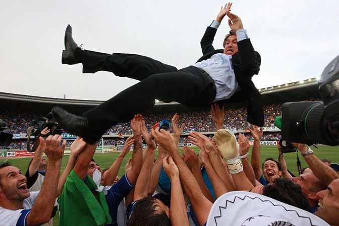 "Es un momento muy emocionante, un éxito enorme para la ciudad", llegó a declarar aquella noche el entrenador xerecista, coreado por la afición y aupado por sus futbolistas inmediatamente después de terminar el partido contra la S.D. Huesca. Una victoria sufrida y trabajada (2-1) que fue posible gracias al tanto del centrocampista madrileño Carlos Calvo en el minuto 83 de partido. Un momento de euforia que queda en el recuerdo de los miles de xerecistas que hicieron temblar el coliseo jerezano. Corría la penúltima jornada de liga y el Xerez se colaba en el segundo puesto con 81 puntos tras haber liderado la clasificación durante casi toda la temporada. Con los mismos puntos pero en el primer puesto, el C.D. Tenerife, y con un punto menos (80), el Real Zaragoza. Aquella noche, los tres equipos ratificaron su ascenso frente a un cuarto clasificado, el Hércules, que se quedaba con 75 puntos pese a su victoria por cuatro goles a uno frente al Albacete.