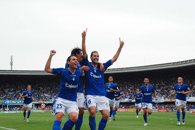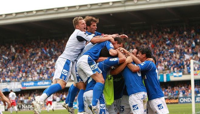 La celebración de la plantilla azulina. FOTO: JUAN CARLOS TORO.