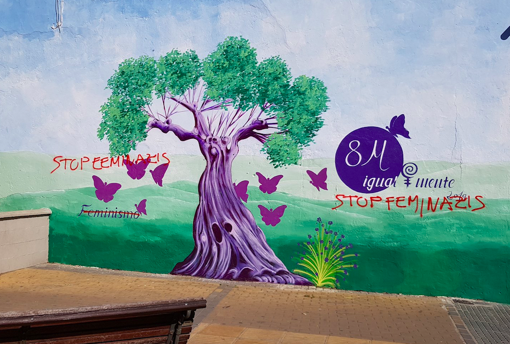 Antoni Gabarre pintando el mural antes del 8M. FOTO: ANTONI GABARRE.No obstante, ahora, en 2019, después de miles de murales "es la primera vez que no respetan mi trabajo". Gabarre se percató de la pintada el pasado martes 18 de abril. "Tuve que ir al centro porque tenía que ultimar mi voto por correo, ya que ese fin de semana estaré en Barcelona. Fui al centro y al pasar por delante, digo, qué tiene el mural, algo rojo... Paré, me acerqué y lo vi", narra. "Llevaba un par de días, ha sido una pintada reciente", indica. Confiesa que nada más apreciar cómo habían ultrajado su trabajo, cogió papel y boli para más tarde denunciar el hecho a través de las redes sociales.