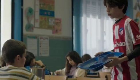 En vídeo un niño solitario se sienta en el comedor y otro grupo de alumnos comienzan a tirarle trozos de comida y a burlarse en grupo de él. El juego va aumentando hasta que el acosar decide tirarle un panecillo entero. En ese instante, un joven para la comida con su bandeja y le planta cara vestido con una camiseta del Atletico.