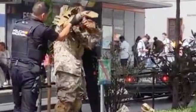 Ante el asombro total de los pasajeros, un hombre ha irrumpido vestido de Rambo y con un rifle falso en un tranvía de Tenerife.