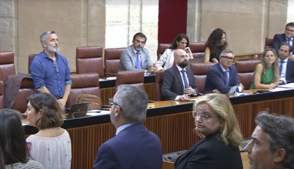 A esa propuesta sí se ha sumado el Partido Popular y los miembros del Gobierno andaluz, que se han levantado de sus asientos, al igual que el resto de formaciones. Excepto Vox. El grupo que preside Manuel Gavira ha rechazado sumarse y no se ha levantado, no secundando así la propuesta de Por Andalucía. Incluso miembros de sindicatos y patronal, asistentes al pleno en la zona de público, se han levantado.