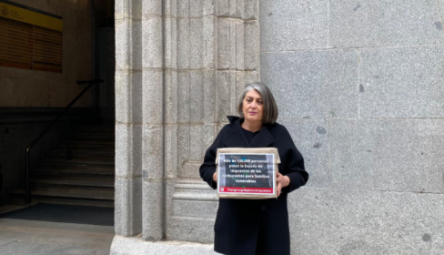 María Victoria entrega ahora más de 130.000 firmas pidiendo “la bajada de los impuestos de carburantes para familias vulnerables” en el Ministerio de Hacienda.